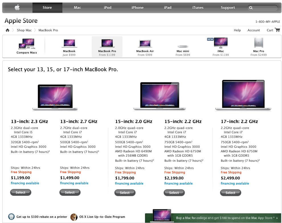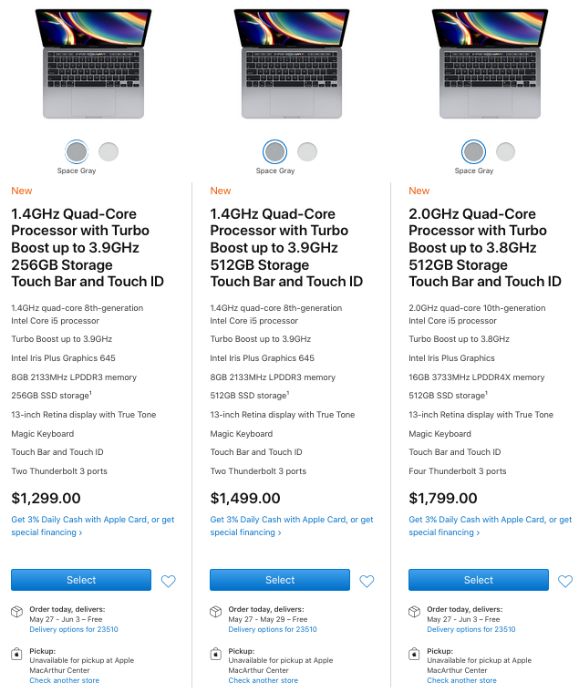 9 years later, here's what you can get for MacBook Pros (this isn't every MBP as the new Apple store site isn't laid out as nice).
