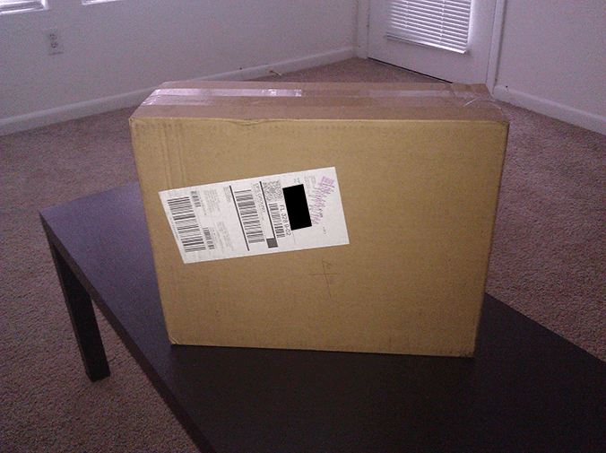 So, according to my Apple order and Barclaycard financing emails, I made my purchase around 10:40 AM on Friday, July 8, 2011. On July 12 or July 13, it arrived. It was delivered to my apartment's office.