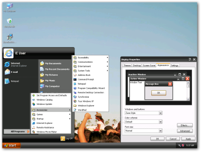 | Windows XP Zune | This was my favorite theme. The Zune was my favorite music player. At the time, Microsoft created a Windows XP Zune theme and I loved it. | |